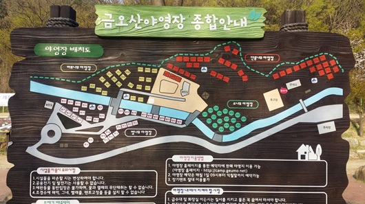 야영장 주변에는 등산로, 금오지 올레길, 야은 길재선생의 채미정, 금오랜드 등 각종 산책로와 볼거리, 즐길 거리가 마련돼 있어, 가족단위로 캠핑하기에 적합한 곳이다.