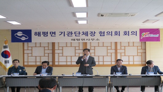 해평면은 4월 14일 면사무소 2층 회의실에서 도의원, 관내 기관단체장 등 30여명이 참석한 가운데 4월 기관단체장협의회 회의를 개최했다.