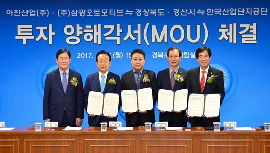 경상북도는 4월 17일 도청 회의실에서 경산시, 한국산업단지공단, 아진산업(주), ㈜삼광오토모티브와 경산4일반산업단지에 자동차부품 및 전자제품 공장 건립을 위한 2,261억 원 규모의 투자양해각서를 체결했다.