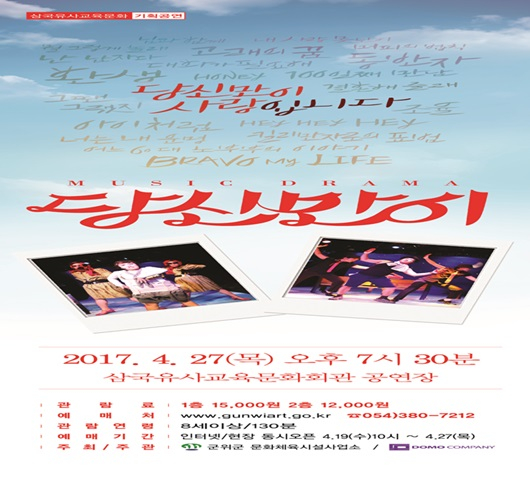 군위군은 4월 기획공연 뮤직드라마 ‘당신만이’를 4월 27일 삼국유사교육문화회관 공연장에서 저녁 7시 30분부터 130분간 공연한다.
