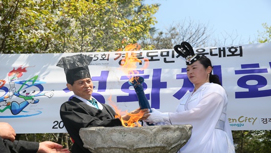 제55회 경북도민체육대회의 성화가 4월 27일 경주 토함산에서 채화됐다. 이번 대회는 영천에서 28일부터 5월 1일까지 12,000여명이 선수들이 참여해 열띤 경쟁을 펼치게 된다. |