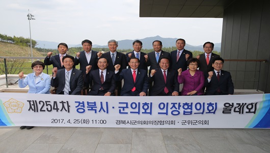 경상북도시군의회의장협의회는 4월 25일 군위군에서 시군의회 의장 23명이 참석한 가운데 제254차 월례회를 개최했다. 이날 회의에 앞서 개회식에서는 김익수 협의회장의 개회사를 시작으로 월례회를 주관한 김영호 군위군 의회 의장의 환영사, 김영만 군위군수의 축사 순으로 진행됐다.
