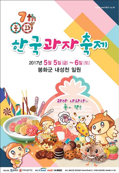 봉화군 한국과자축제가 5월 5일 ~ 6일 양일간 봉화 내성천 체육공원과 후토스 동산에서 ‘과자나와라. 뚝~딱!’이란 주제로 개최된다. 이번 행사는 전시, 체험, 공연, 부대행사 등 총 네 개의 테마로 꾸며져 방문객들에게 다양한 볼거리와 즐길거리를 제공하고, 500년 전통을 자랑하는 닭실한과를 비롯해 국내 브랜드 과자, 웰빙과자, 외국과자 등 다양한 과자들이 선보일 계획이다.