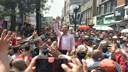 홍준표 자유한국당 대선후보가 5월 4일 영주 하망동 태극당 앞에서 유세를 가졌다. 홍준표 후보는 최근 대구·경북 지역에서 상승하고 있는 지지율을 바탕으로 지난 3일 대구 동성로에서, 4일 오전에는 안동과 영주에서 거점 유세를 하며 연일 강행군으로 보수층의 결집을 호소했다. 이날 태극당 앞에는 약 3,000여명의 인파가 모여 홍 후보의 연설을 지켜봤다.