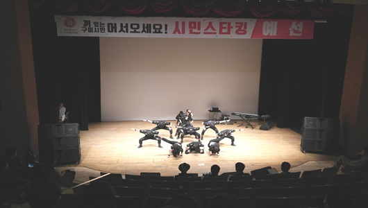 지난 4월 29일 구미시민들의 끼와 재능 한마당 ‘LG시민스타킹’ 예선이 구미문화예술회관에서 진행됐다. 스페셜 MC 기웅아재&단비와 함께한 이번 예선전은 노래와 댄스 외에도 태권무, 난타, 폴댄스 등 다양한 퍼포먼스 등 총 55개 팀 145명이 참가해 치열한 경합을 벌였다. 이 날 끼와 재능을 인정받아 본선진출을 확정지은 구미시민은 가요에 김건민, 전지원, 마칠린 댄스부문에 라이트포스, 정효원 퍼포먼스부문에 묘기요요 강승모, 퓨전밸리 쟈스민쥬니어 밴드부문에 거리&, 기타사랑 아띠로 총 9개 팀이 진출했다. 본선에 진출한 9개 팀은 5월 13일 ‘제25회 LG기 주부배구대회’에서 최종경연을 통해 최종승자를 가리게 된다. 대상은 상금 100만원과 부상으로 32인치 LED TV, 금상에는 상금 80만원과 LG 퓨리케어 공기청정기, 은상에는 상금 60만원과 LG코드제로 청소기, 동상에는 상금 40만원과 LG전자레인지가 지급된다.