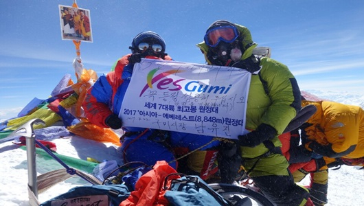 Yes Gumi 7대륙 세계최고봉 원정대는 지난 3월 22일 체육회관에서 출정식을 갖고 같은 달 24일 에베레스트(네팔 쿰부 히말라야) 현지로 출국, 4월 25일 베이스캠프에 도착해 등정을 준비해 왔으며, 마침내 5월 21일 에베레스트 정상 등정에 성공했다.