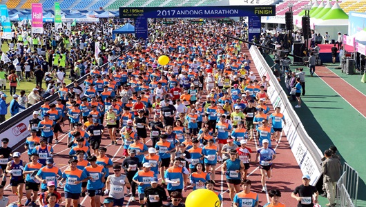 올해 첫 풀코스를 선보인 2017 안동마라톤대회가 6월 4일 성대히 열렸다. 전국 각지에서 총 6,100여 명의 역대 최다 신청으로 뜨거운 관심 속에 개최된 2017 안동마라톤대회는 수려한 자연경관과 시민, 마라톤 동호인이 함께 어우러져 장관을 연출하는 등 대성황을 이뤘다.