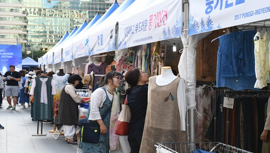 청계광장에는 천연염색체험관과 풍기인견홍보관 그리고 참가업체 판매부스 등 총 20개 부스가 설치돼 3일간 운영되고 6월 5일 시니어 패션쇼와 현장 이벤트로 본격적인 판매와 홍보활동이 이어졌다.