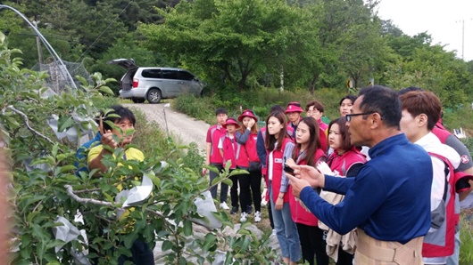 직원들은 오로1리를 찾아 일손이 모자란 과수 농가에서 사과 한 개 한 개마다 정성스레 봉지를 씌우느라 구슬땀을 흘렸으며, 명곡리 장애인 가구와 곡내지 주변을 말끔히 청소했다.