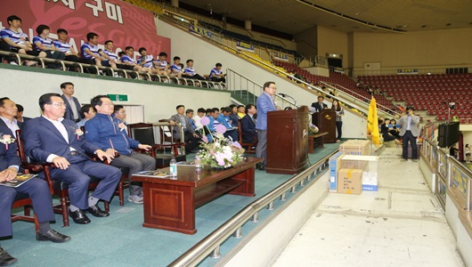 개회식에 참석한 남유진 구미시장은 선수들과 가족들의 구미 방문을 진심으로 환영하며 “공정한 승부를 펼쳐 화합의 대회를 만들어 주기를 바라며, 명품스포츠도시 구미에서 치러질 2020년 제101회 전국체육대회에 많은 성원과 참여를 바란다.”고 말했다.