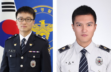 (左) 강동수 순경, (右) 석준흠 순경 | 구미경찰서 기동순찰대는 지난 6월 11일 연탄불을 피우고 의식 없는 자살기도자(30대, 남)를 심폐소생술로 생명을 구했다.