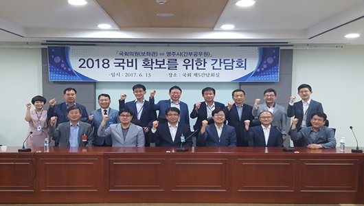 시는 6월 13일 국회 제5간담회실에서 정부예산 확보와 지역현안사업의 해결을 위한 정책적 지원과 협조를 구하기 위해 민인기 부시장과 관련 부서장, 최교일 국회의원실 보좌관 등이 참석해 정책 간담회를 가졌다.