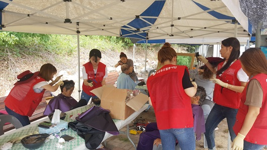 이날 행사는 자매결연마을인 무을면 무이리를 방문해 금오종합사회복지관과 함께 어르신들이 혼자하기 힘든 겨울이불 세탁 봉사 및 지역의 이미용 봉사단체와 함께 ‘찾아가는 미용실’을 꾸려 어르신들께 염색을 해드렸으며, 일손이 부족한 농가를 찾아 손을 보탰다.