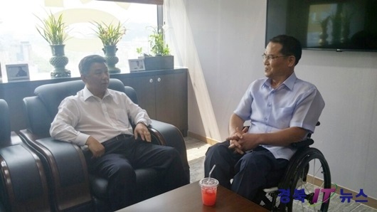 장석춘 국회의원은 6월 23일 의원사무실에서 우창도 구미시장애인단체협의회장을 만나 장애인들의 불편사항을 청취하고 소외계층에 대한 깊은 관심을 보였다. |
