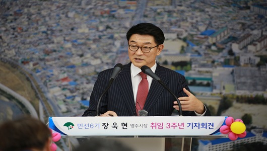 장욱현 영주시장은 7월 3일 시청에서 취임 3주년을 맞아 기자회견을 열고 민선6기 3년 성과와 향후 시정방향에 대해 밝혔다.