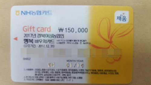 봉화군은 7월부터 여성농업인을 대상으로 건강증진 및 문화생활 등 삶의 질 향상을 위해 여성농업인 행복바우처 카드 발급을 실시중이다.