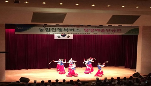 행복버스는 7월 6일 농업인들에게 무료 한방진료, 65세 이상 어르신들에게 장수사진촬영, 7일에는 선산문화회관에서 농업인은 물론 지역 주민들을 위한 평양예술단 공연을 펼쳐 농업인의 삶의 질 향상은 물론 농촌문화를 이해시키는데 크게 기여했다는 평가를 받았다.