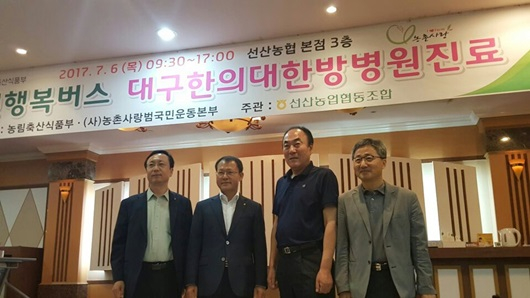 임춘구 선산농협 조합장은 의료의 사각지대인 농촌에 무료진료를 해 주신 대구한의대부속 한방병원 의료진들께 감사의 인사를 전하고, “의료, 문화시설이 부족한 농촌에 행복버스는 무더운 날씨로 농사일에 지친 농업인들에게 가뭄의 단비처럼 많은 즐거움을 안겨줬다.”고 말했다.