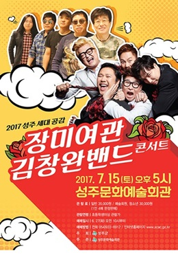 성주군은 오는 7월 15일 오후 5시 성주문화예술회관 대공연장에서 2017 군민세대 공감을 위한 ‘장미여관·김창완 밴드 콘서트’를 공연한다.