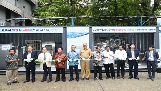 경주시가 자체 개발한 급속수처리기술이 인도네시아 해외시장 사업화에 성공하면서 국내외 물산업시장에서 활발한 사업수주가 기대되고 있다. 경주시는 7월 17일 인도네시아 자카르타 상수도사업본부(PDAM)에서 이동식 음용수 공급장치 시범시설 설치사업의 성공적 시운전을 마치고 준공식을 가졌다고 밝혔다.