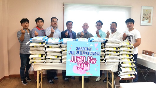 국제로타리 3630지구 구미강동로타리클럽은 7월 14일 이효성 회장, 방동성·배영식 전직회장과 회원들이 금오재가노인지원서비스센터(센터장 묘운)를 방문해 어려운 이웃을 위한 사랑의 쌀 나눔 봉사활동을 실천했다.