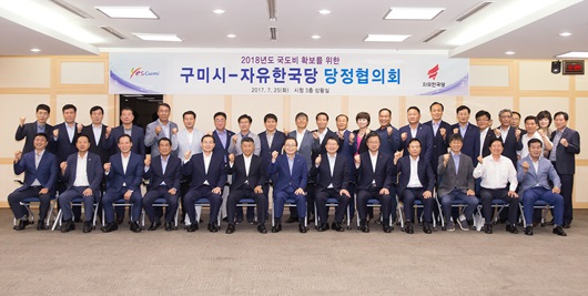 구미시는 7월 25일 시청 3층 상황실에서 자유한국당과 당정협의회를 갖고 내년도 국도비 확보 및 지역현안을 논의했다. 이날 협의회에는 남유진 시장, 백승주·장석춘 국회의원, 김익수 의장, 도·시의원이 참석해 현안 및 핵심 사업의 국도비 확보방안을 공동 모색하는 뜻깊은 시간이 됐다.