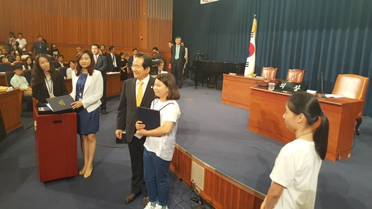 율곡초등학교 연구회는 3월부터 7월까지 활발한 입법 연구 활동을 통해 ‘학교에서 학생건강검사를 할 때 학생 인권 및 개인정보 보호에 대한 법률안’을 제출해 17개 우수법률안에 선정됐고, 14일 대회에서 상임위원회를 통과해 본회의에서 전국 149명의 어린이의원의 투표 중 47표를 얻어 우수법률안 국회의장 대상의 영예를 얻게 됐다. 본회의가 끝나고 시상식에서 율곡초등학교 연구회를 대표하여 박수연 학생이 정세균 국회의장으로부터 대상(부상 문화상품권 100만원)을 수상했고, 지도교사는 교육부장관상을 수상했다. |