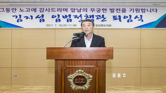 경북도의회 김지섭 입법정책관이 지난 7월 19일 경북도의회 세미나실에서 30년간의 공직생활을 마무리하고 퇴임했다. 김지섭 입법정책관은 1987년 경상북도 문화공보담당관실의 홍보연구요원으로 공직에 첫 발을 디딘 후, 경상북도 기획관리실 정책기획팀장, 혁신분권담당관실 혁신기획팀장, 자치행정국 교육지원담당, 새경북기획단 인재육성담당, 기획조정실 광역협력팀장을 역임했다.