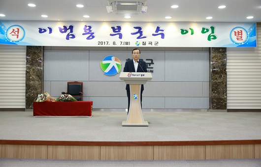 이범용(58) 칠곡군 부군수가 1여년간의 소임을 마치고 이임했다. 칠곡군은 8월 7일 군청 대강당에서 본청 직원 등 200여명이 참석한 가운데 이임식을 가졌다. 이범용 부군수는 지난 6월 명예퇴직을 신청한 상태라 이번 이임식이 사실상 이범용 부군수의 40년여의 공직생활을 마무리하는 자리이기도 했다.
