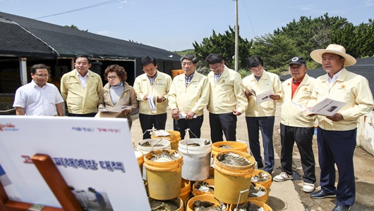 경상북도의회 농수산위원회(위원장 나기보)는 8월 8일 최근 폭염에 따른 동해안 고수온으로 인해 양식장 어류폐사 등 피해가 발생한 포항 구룡포 현장을 방문해 피해현황과 대책마련 사항을 점검하고 피해어가를 방문해 격려했다.