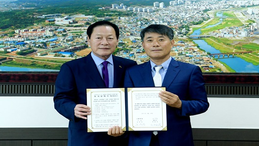 김영석 영천시장(좌), (주)비엠 박병욱 대표(우) |