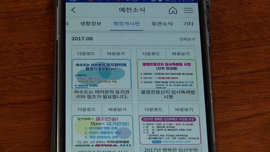 예천군은 스마트폰을 활용한 모바일 홍보시스템 ‘M-예천군’ 앱을 만들어 빠른 군정홍보와 군민들과 소통을 강화하고 있다.