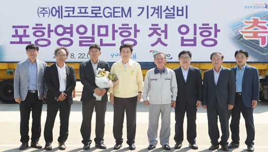 지난 6월, (주)에코프로GEM가 포항시 북구 흥해읍에 위치한 포항부품소재전용단지에 공장 신축공사를 위한 착공식을 가진데 이어, 8월 22일에는 영일만항 으로 본격적인 제조를 위한 기계 설비를 들어와 환영행사를 가졌다.