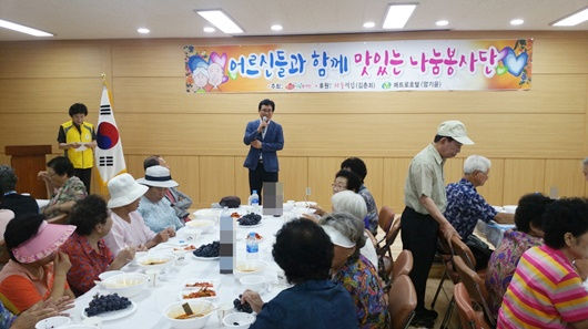 [구미=경북IT뉴스] 구미시 맛있는 나눔 봉사단(단장 김춘희)은 8월 25일 형곡1동주민센터 2층 회의실에서 어르신 300분을 모시고 정성스레 준비한 음식을 대접하고 어르신들과 소통하는 시간을 가졌다.