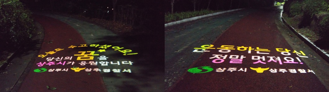 [상주=경북IT뉴스] 지난 8월 25일 상주 남산공원 둘레길에는 ‘운동하는 당신 정말 멋져요’ ‘당신의 꿈을 상주시가 응원합니다’ 등의 문구가 늦은밤 공원을 찾은 시민들의 눈길을 끌고 있다. 상주시가 상주경찰서와 함께 안전한 도시환경 조성을 위해 설치한 LED조명 때문이다.