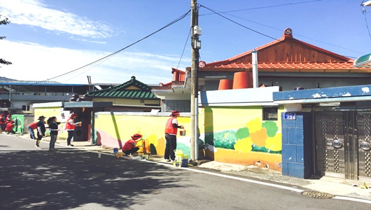 문경시 모전천일대 노후된 벽화 그리기 봉사활동