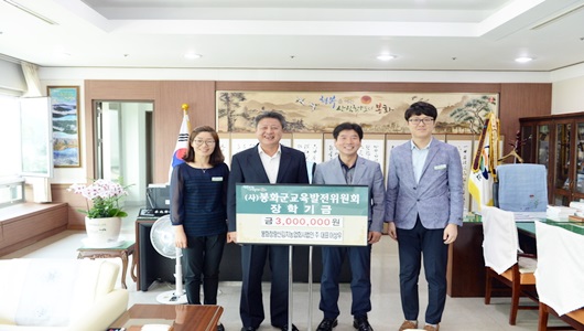 [봉화=경북IT뉴스] 봉화청량산김치 이상우 대표는 8월 28일 (사)봉화군교육발전위원회(이사장 박노욱 봉화군수)에 장학금 300만원을 기탁했다.