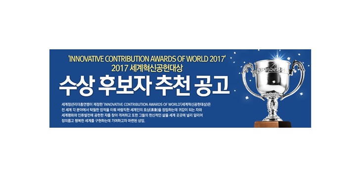 세계연맹, ‘2017 세계혁신공헌대상’ 후보자 추천 공고