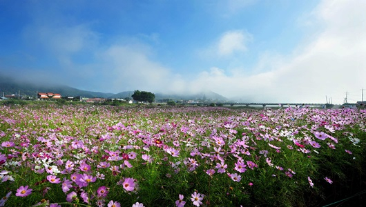 [군위=경북IT뉴스] 군위군 의흥면 하천변에 코스모스가 활짝펴 가을 정취를 선사하고 있다. 멋들어진 코스모스를 맞이하기 위해 의흥면서무소에서 올 봄과 여름동안 정성껏 가꿨다고 한다.