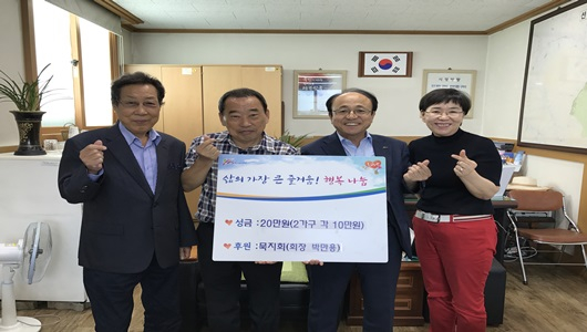 익명의 기부자 쌀 기탁, 정수로타리 생필품, 묵지회 현금 기탁