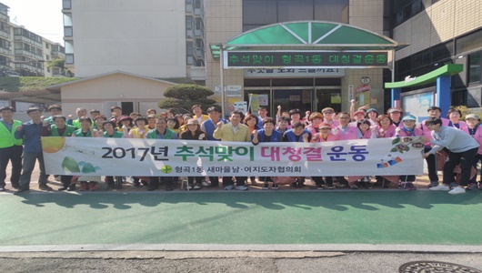 이번 대청결운동은 불법광고물 수거, 대로변 청소 등 추석을 맞아 깨끗하고 쾌적한 형곡1동을 만드는 데 기여했다. 한편 새마을남녀협의회(회장 박장식·전선희)는 대청결운동에 참여한 단체회원과 주민들을 위해 정성스럽게 준비한 수육, 족발, 부추전을 대접해 분위기를 더욱 훈훈하게 만들었다.