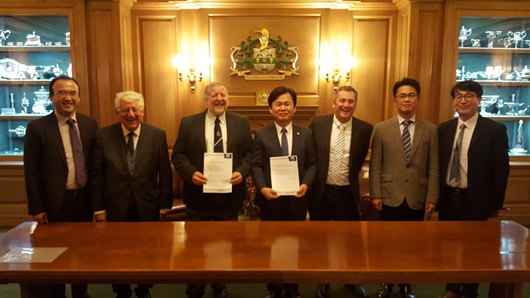 [경산=경북IT뉴스] 경산시는 지난 10월 17일(영국 현지일 기준) 영국AMRC그룹 본원에서 영국AMRC, 다이텍연구원과 함께 ‘AMRC ASIA Industry4.0 설립 및 Factory2050사업 공동협력추진 협정서’를 체결했다.