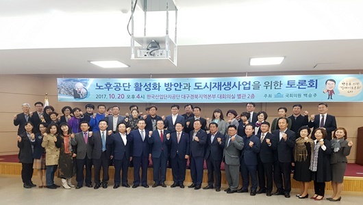 [경북=경북IT뉴스] 자유한국당 백승주 의원(경북 구미갑)은 10월 20일 한국산업단지공단 대구경북지역본부 대회의실에서 ‘구미시민을 위한 노후공단 활성화 방안과 도시재생 사업’을 주제로 시도의원, 관계기관, 시민 등이 참석한 가운데 토론회를 개최했다.