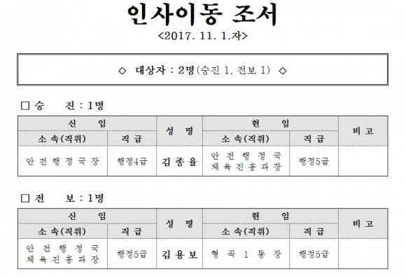 총2명(승진 1명, 전보 1명)