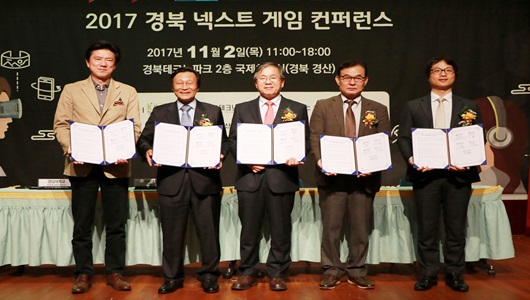 이날 협약식에는 지역 게임산업의 동향을 살펴보는 ‘2017 경북 넥스트 게임 컨퍼런스’가 함께 열려 정창주 총장과 이재훈 경북테크노파크 원장, 최영조 경산시장, 송경창 경상북도 창조경제실장 등 관계자 100여 명이 참석했다.