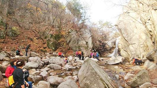 왕의 길 용연폭포 | ▲신라 왕들의 보폭에 발을 맞추는 ‘왕의 길’ ‘신문왕 행차길’ 신문왕이 동해바다에 잠든 문무대왕을 찾아간 길이다. 경주에서 감포로 넘어가는 길, 추령재 터널 전에 추원마을로 빠지는 지점이 왕의 길 시작이다. 경사가 높아서 말이 넘어졌다는 ‘말구부리’, 신문왕이 잠시 쉬었다 세수를 하고 간 ‘세수방’ 등 이야기가 가득한 길이다. 천년고찰 기림사끼지 이어지는 길은 그저 흔한 단풍 코스가 아닌 천년 신라 역사의 숨결이 스며있는 현장이다.