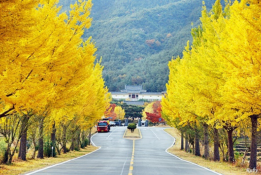 통일전 은행나무길 | ▲나무들이 부르는 가을의 전당 ‘통일전’, ‘산림환경연구원’ 경주 시내에서 불국사로 가는 길. 황금 들판 사이로 통일전 가는 길이 보인다. 통일전의 백미는 은행나무 길이다. 가을을 온 몸으로 느낄 수 있는 이 길은 차에서 내려 흩날리는 은행잎을 맞으며 걸어야 제 맛이다.