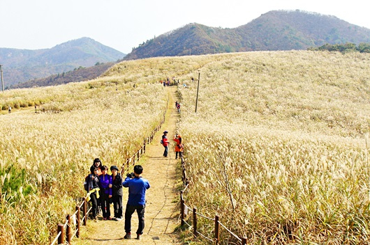 ▲은빛 억새 휘날리는 ‘무장봉 억새길’ 경주의 가을 산길로 가보자. 경주 동대봉산 무장봉(암곡동)은 온 산을 뒤덮은 은빛 억새로 유명한 곳이다. 가을이면 등산객들의 발길이 끊임없이 이어진다. 148만㎡의 억새군락지는 시야 가득히 들어오는 시원한 풍경과 문화재가 함께 어우러진 이색적인 등산로다. 무장봉 근처에는 신라 삼국통일의 역사가 서려있는 무장사지와 무장사지 삼층석탑(보물 제126호)이 있다. 등산과 역사여행이 동시에 가능한 산행길이다. 또한 영화 '태극기를 휘날리며'와 드라마 '선덕여왕' 촬영지로도 입소문이 나 가을이면 많은 관광객의 발길을 끌어모은다. 제대로 된 가을 억새밭 속에서 길을 잃고 싶은 분들은 오시라. 억새밭에서 헤매는 길이 이토록 달콤하다는 것을 똑똑히 깨닫게 해주는 무장봉 억새길이다.