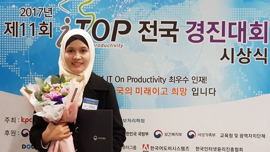 [구미=경북IT뉴스] 구미대학교는 우즈베키스탄 유학생 눌자혼(Nurjakhon, 산업경영전공·21) 씨가 ‘제11회 i-TOP 경진대회’에서 대상을 차지했다고 11월 16일 밝혔다. i-TOP 경진대회(IT On Productivity contest)는 전 국민의 정보화능력 향상으로 국가의 생산성 향상을 목적으로 한국생산성본부가 2007년부터 매년 개최하고 있는 정보화 경진대회다.