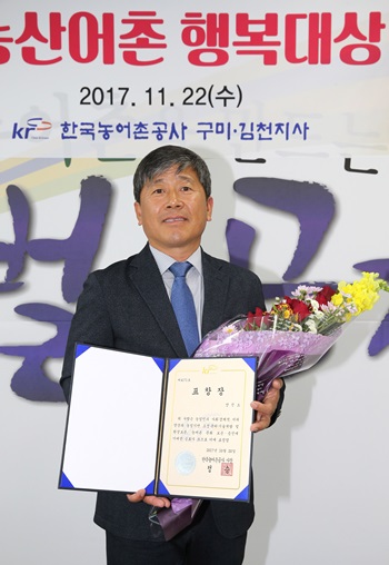 [구미=경북IT뉴스] 양진오 구미시의회 의원이 11월 22일 한국농어촌공사 구미김천지사로부터 ‘2017 농산어촌 행복대상’ 수상자로 선정돼 한국농어촌공사 사장 표창장을 받았다.